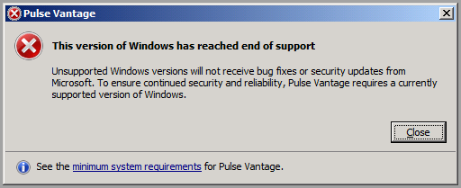 This guide is intended for Pulse users who receive the "This version of Windows has reached end of support" message when they try to launch Vantage.
